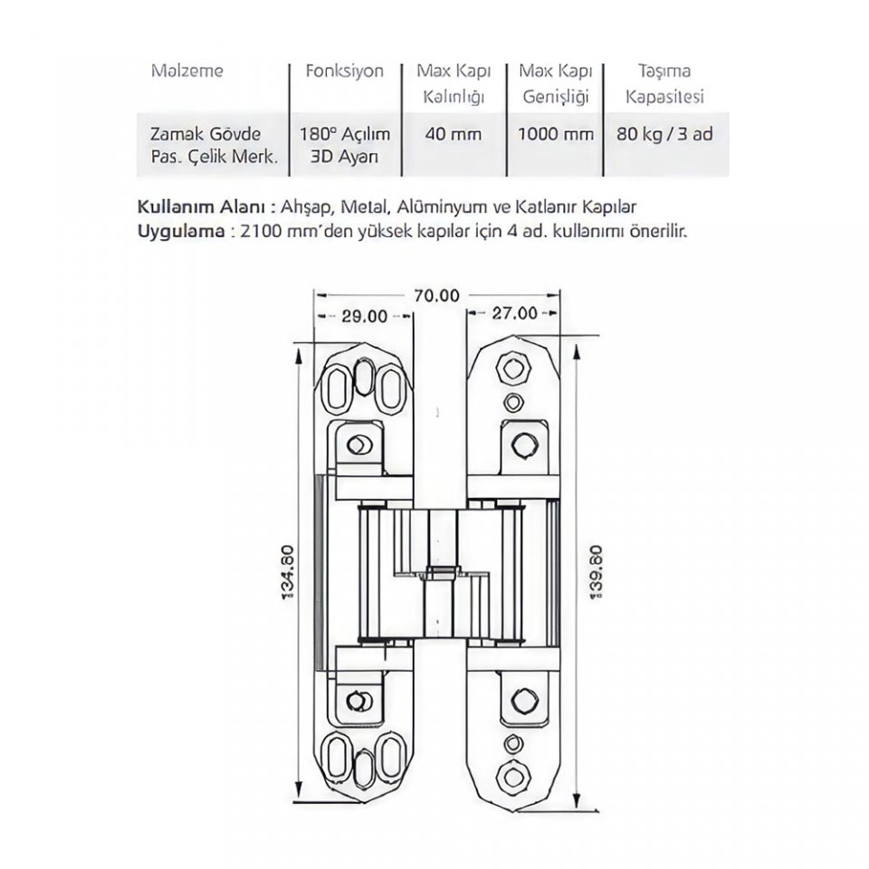 - Uygulama: 2100 mm’den yüksek kapılar için 4 ad. kullanımı önerilir.