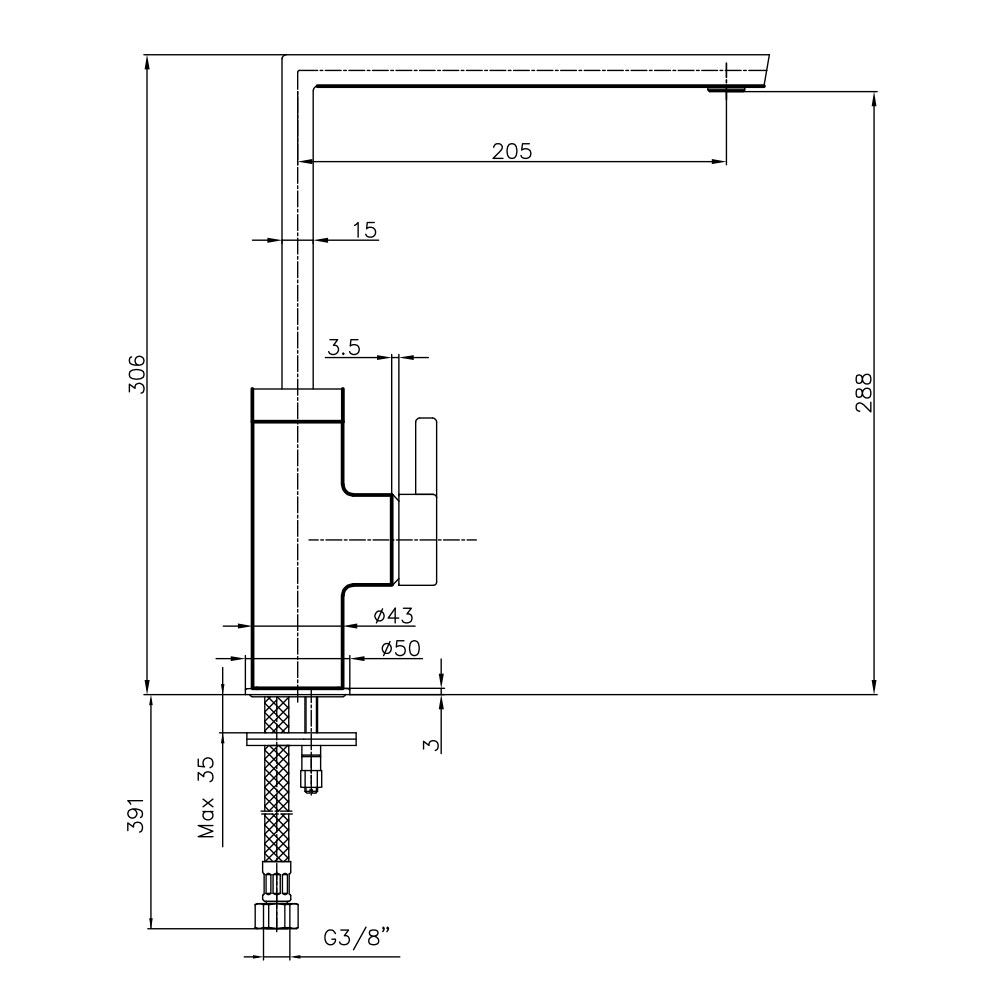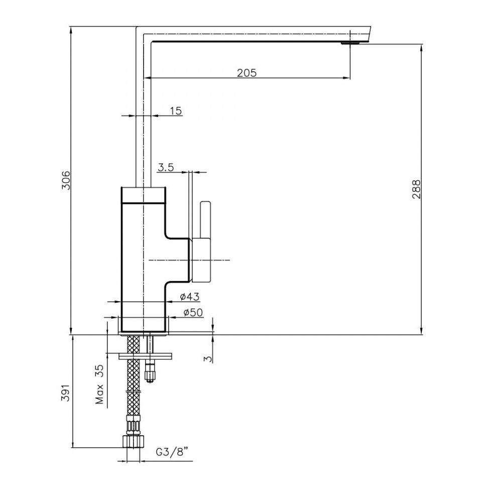 - • Çıkış ucu yüksekliği 225 mm’dir