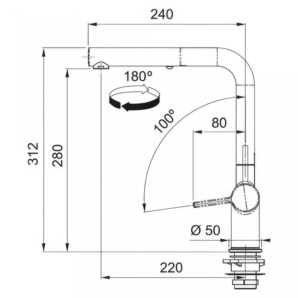 35 mm çapındaki armatür deliği ve 35 mm kartuş çapı, kolay montaj imkanı sunarken, 450 mm uzunluğundaki spiral hortumu geniş hareket alanı sağlar. Yan koldan kontrol edilen bu model, 180° hareket kabiliyeti ile mutfak işlerinizde büyük rahatlık sunar.