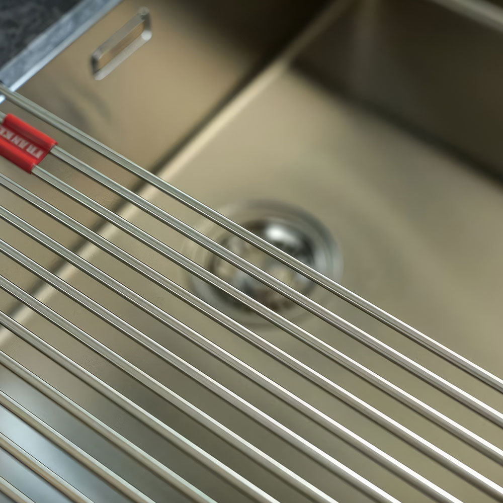 3 1/2 inçlik atık çıkışı ile donatılmış eviye, kolay montaj ve temizlik imkanı sunar. Damlalıksız tasarımı, minimalist ve şık bir görünüm sağlar. Atık kiti eviyeye dahildir ve manuel sifon kumandası bulunmaktadır. Armatür deliği bulunmamaktadır.