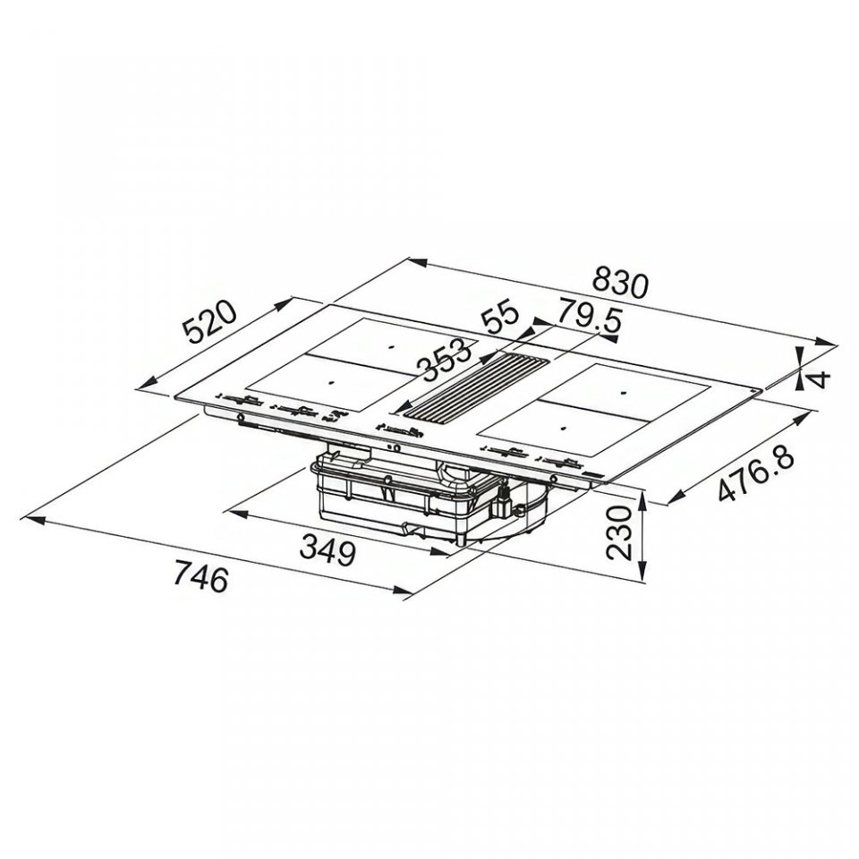 Franke FMY 8391 R H Mythos 2'si 1 arada Siyah Cam 83cm. Ocak ile Davlumbaz