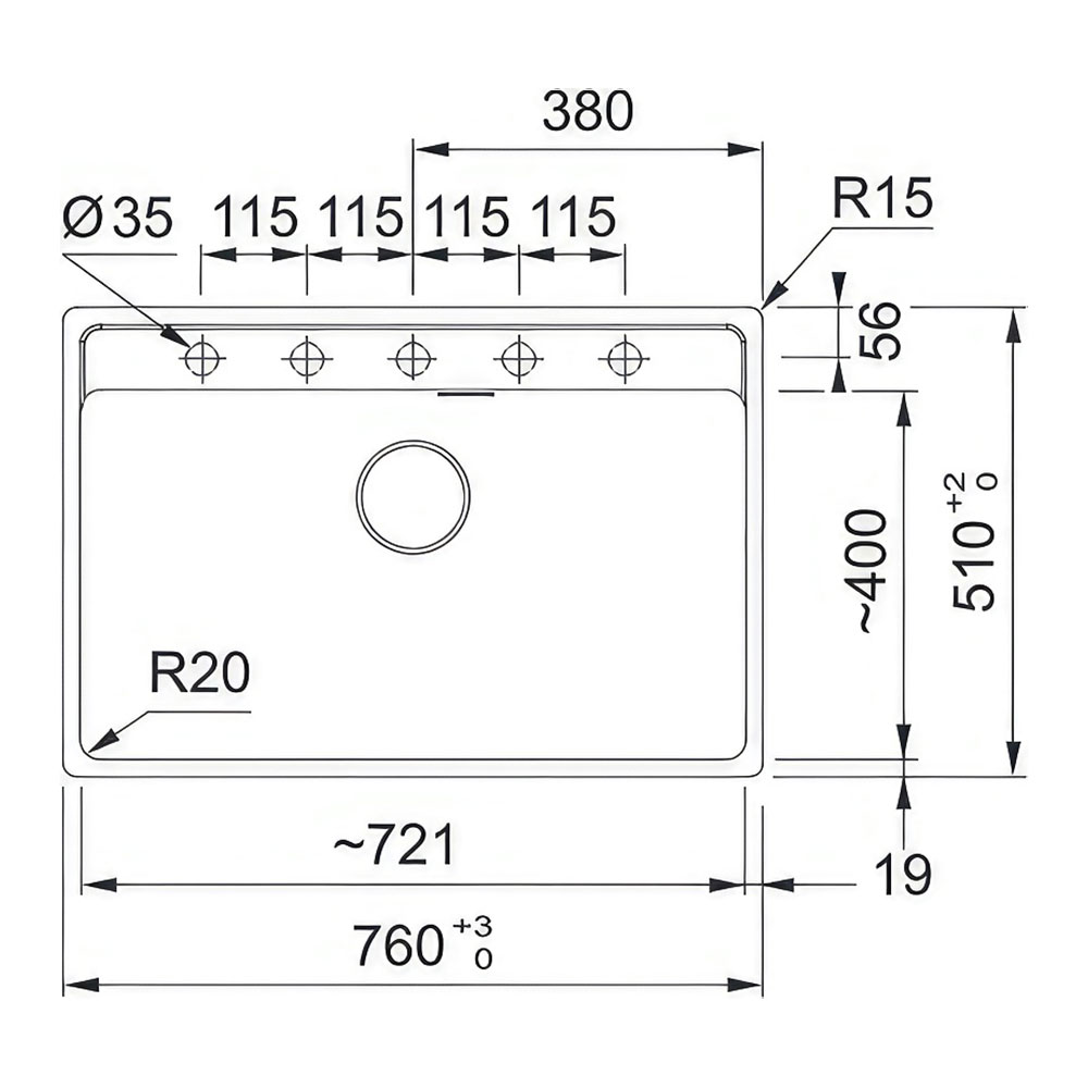 Bu etkileyici eviye, 720x400 mm ölçülerinde geniş bir hazne ve 200 mm derinliğe sahiptir, böylece geniş tencereleri ve tabakları rahatlıkla yıkayabilirsiniz. 3 1/2" atık çıkışı ve dahil edilen atık kiti ile kurulumu kolaydır. Franke Maris MRG 610-72, minimum 80 cm genişliğindeki alt dolaplara uygun, kesim ölçüleri ise 740x498 mm'dir.