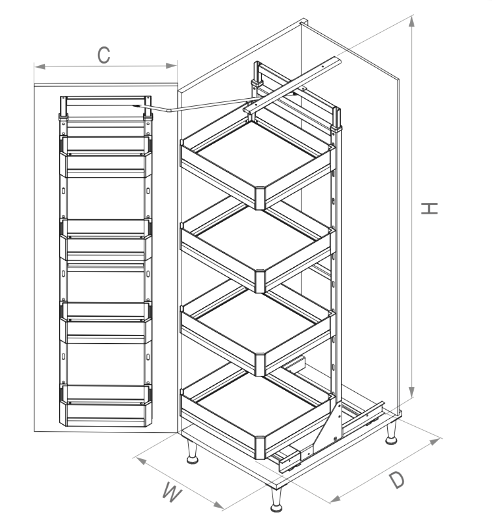 - Ölçü (W x D x H) : 530 x 510 x 1700 - 1850 mm.