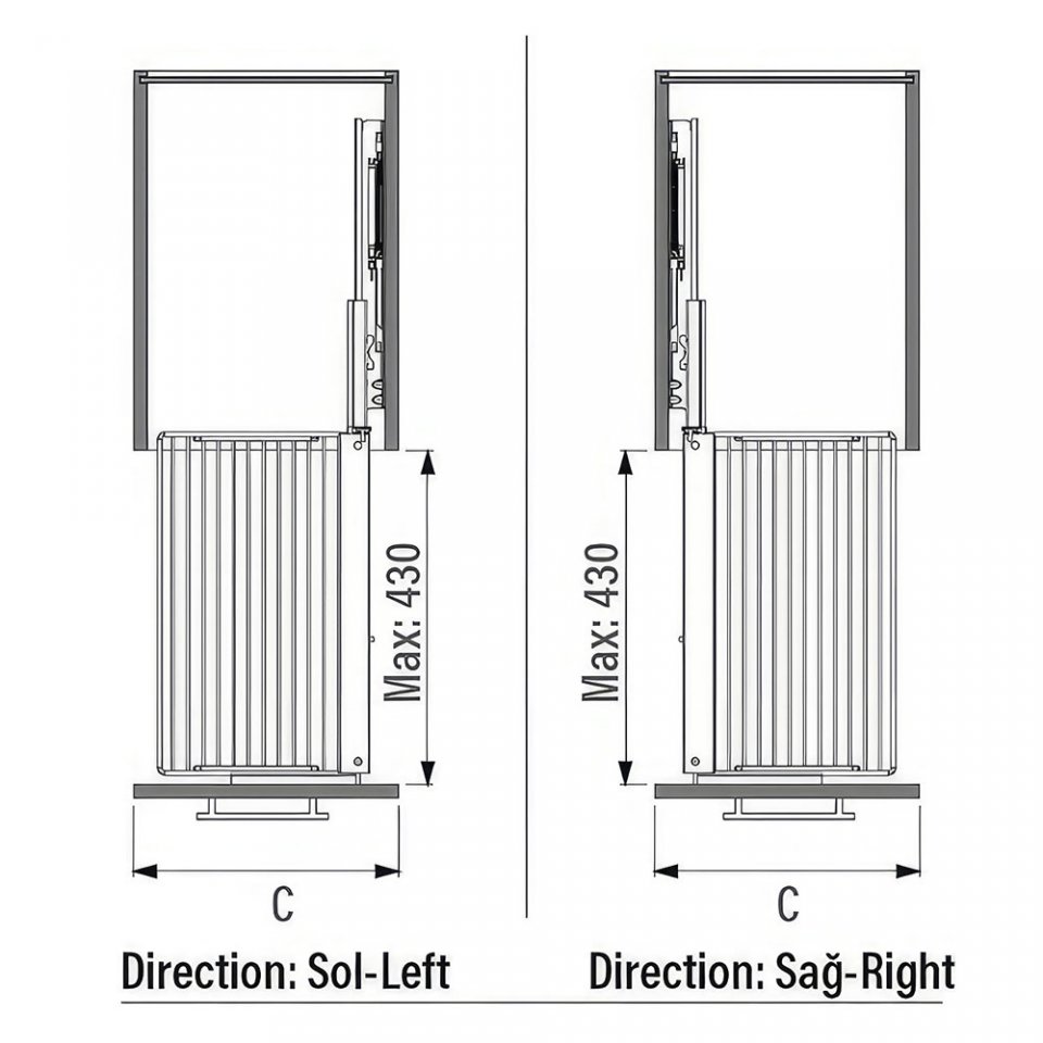 Mutfakta şık, dayanıklı ve fonksiyonel bir depolama çözümü arıyorsanız, Starax S-2243-A Yandan Gizli Raylı Ahşap Tabanlı Tel Ünite, modern ve kullanışlı tasarımıyla mükemmel bir seçim! Sağ açılım mekanizması ve 90° döner ray sistemi, dolap içindeki eşyalarınıza kolay ve hızlı erişim sağlarken, antrasit rengi mutfağınıza modern ve sofistike bir görünüm kazandırıyor. Ahşap tabanlı tasarım, geleneksel tel raflardan farklı olarak daha sağlam ve estetik bir kullanım sunarken, dayanıklı malzemesiyle uzun ömürlü kullanım sağlar. 205 x 470 x 635 mm ölçüleri ve 25 cm genişliği, özellikle dar dolaplarda maksimum alan verimliliği sunar. Sessiz ray teknolojisi, dolap kapaklarının yumuşak ve sessiz kapanmasını sağlar. 10,8 kg ağırlığı ve 0,064 m³ hacmi, ürünün sağlam ve dayanıklı yapısını destekler.