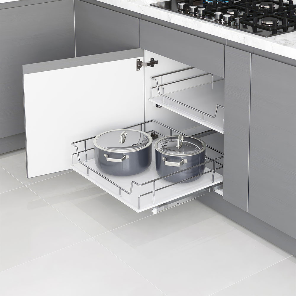 Starax S-2614-C Ahşap Tablalı Bağımsız Çift Açılım Gizli Raylı Çekmece Krom 50 cm.
