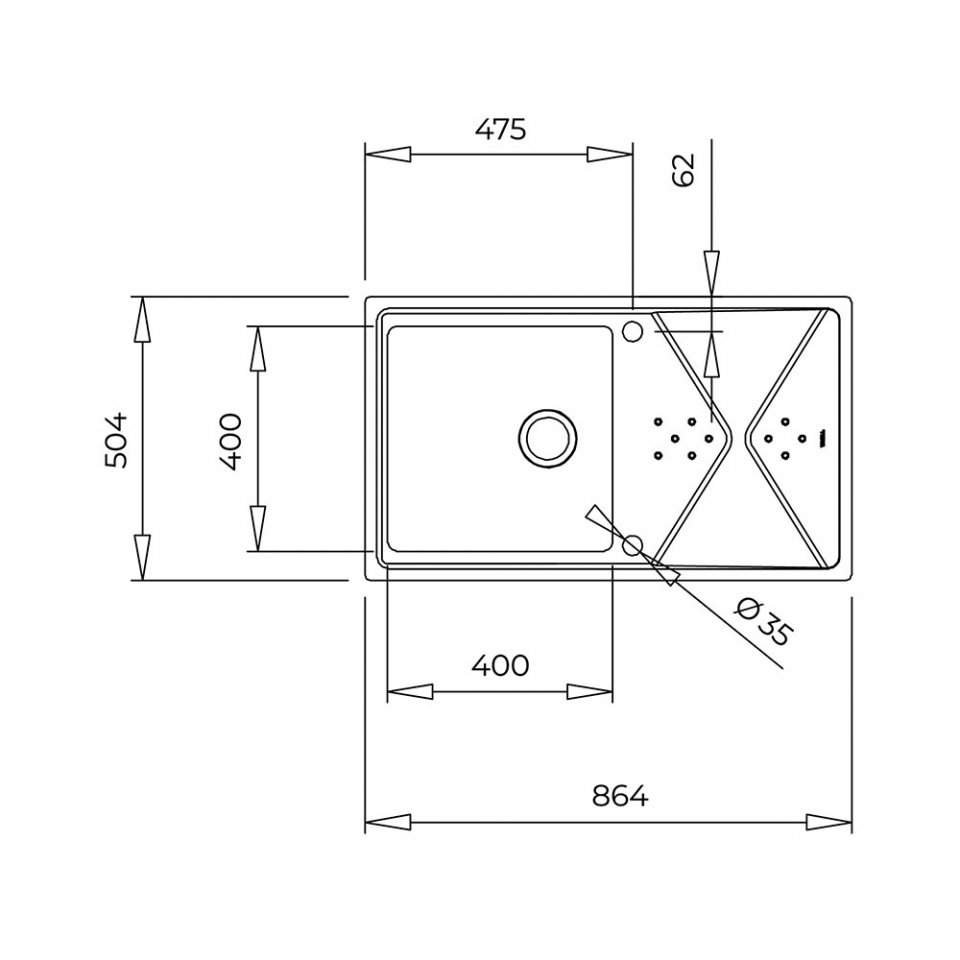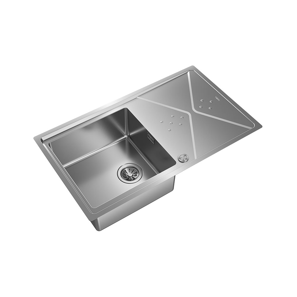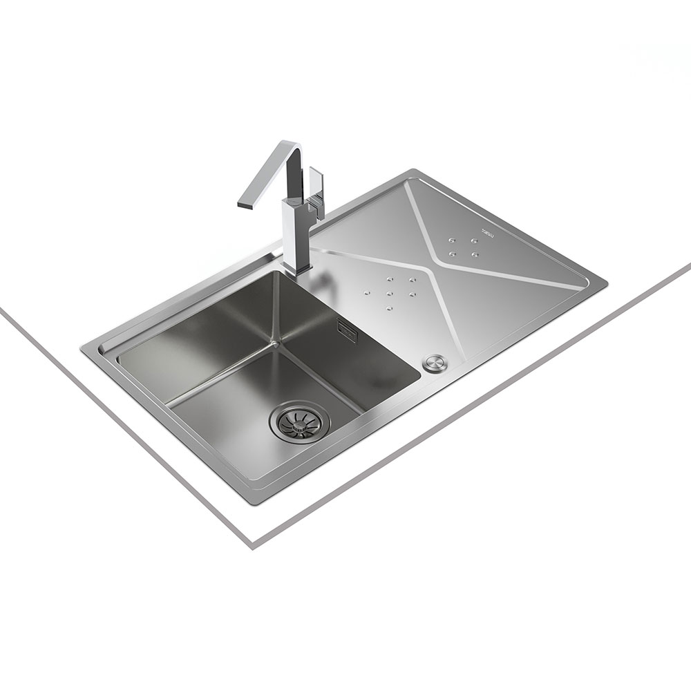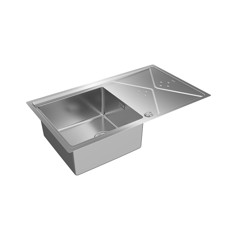 504 mm genişliğindeki bu model, 50 cm minimum tezgah ölçüsüne uygun olarak tasarlanmıştır, tezgahüstü ve tezgaha sıfır montaj imkanları ile mutfaklarınızda esnek kurulum seçenekleri sunar. İki batarya deliği ve 3½" vana deliği ile mutfak gereksinimlerinize uygun şekilde donatılmıştır.